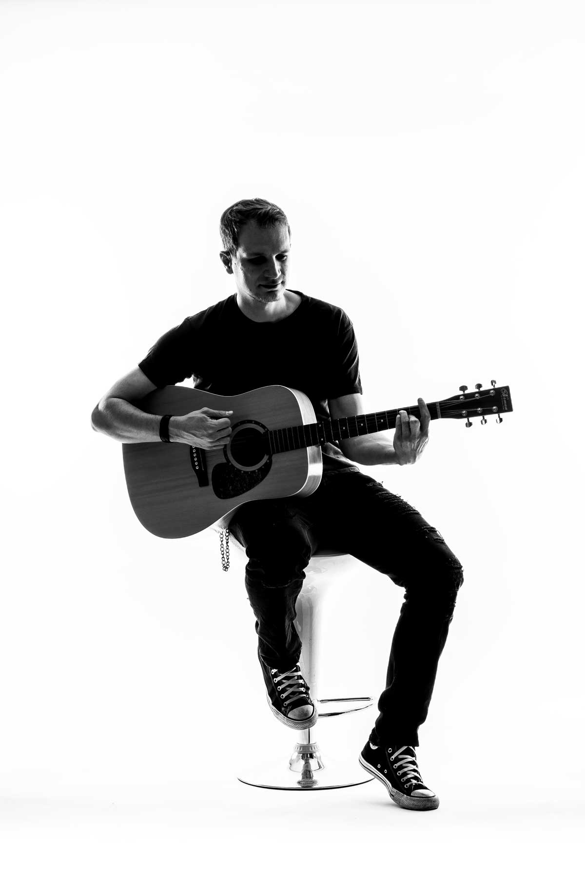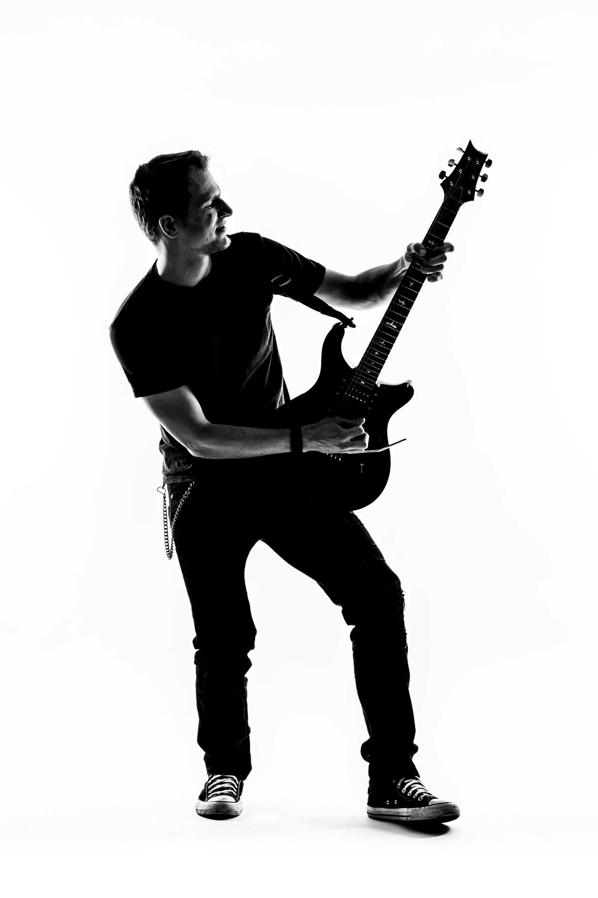 Diese Fotostrecke zeigt einen Konzertabend eines Gitarristen.